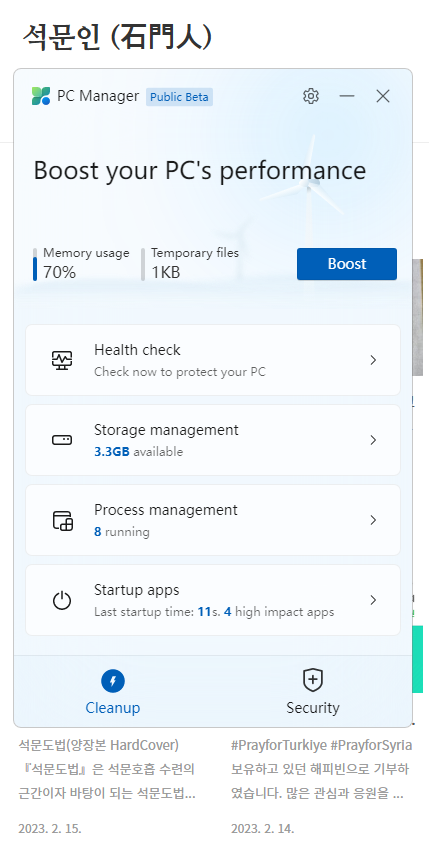윈도우에서 자체 백신에 이어 PC 관리(최적화) 프로그램을 만들었다고 합니다.