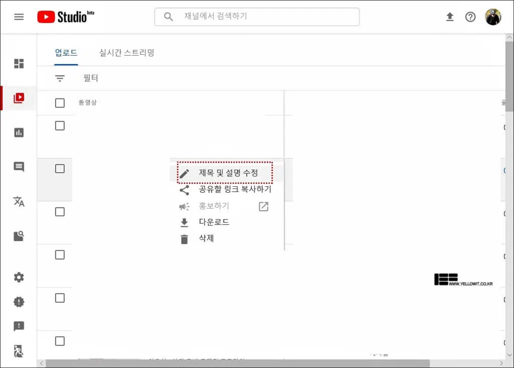 이 문제를 해결하기 위해서는 자신의 유튜브로 접속합니다.