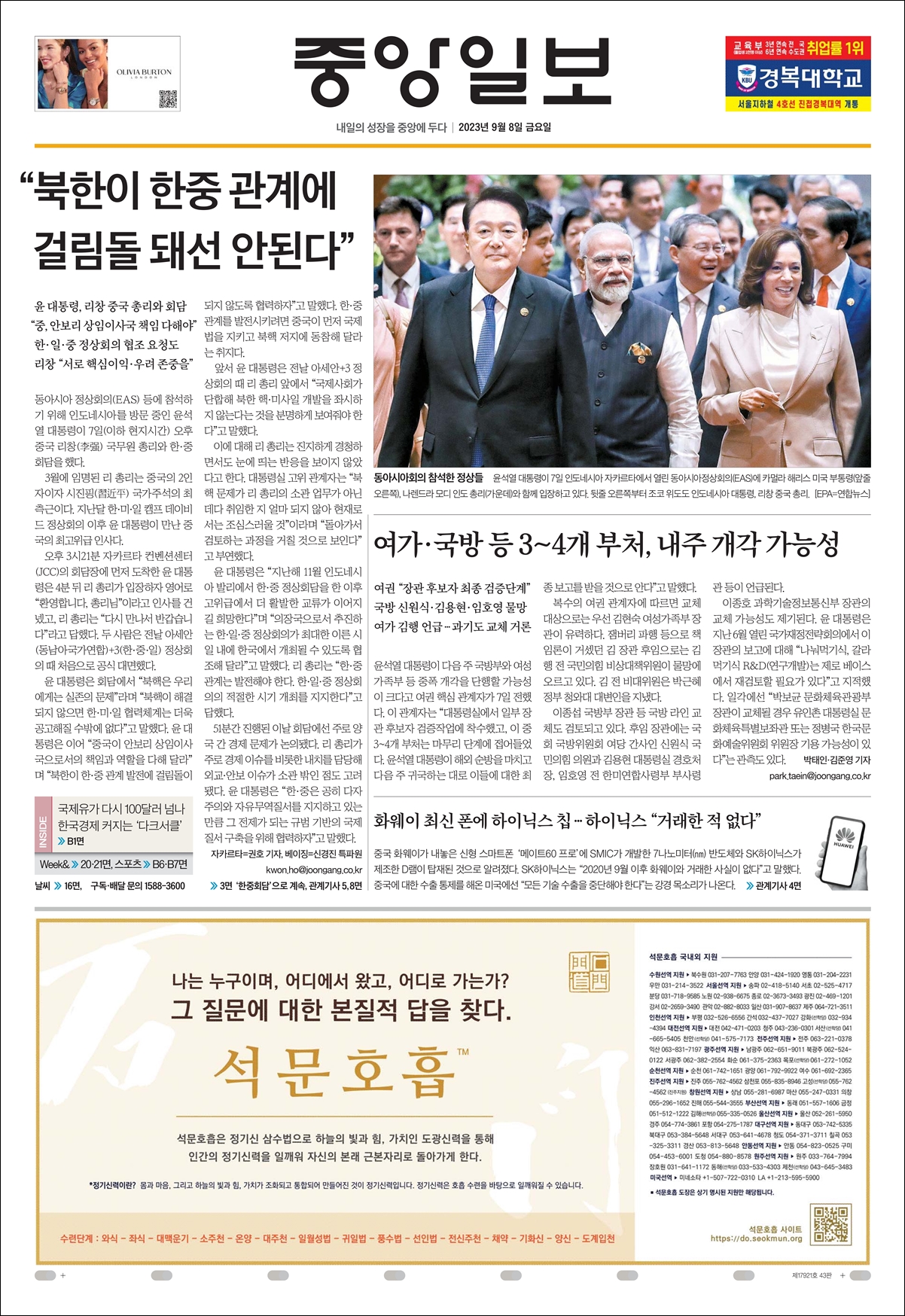 | (2023년 24차, 25차) 석문호흡 신문광고 - 경향신문, 매일경제신문 1면 (0) | 2023.09.12 |