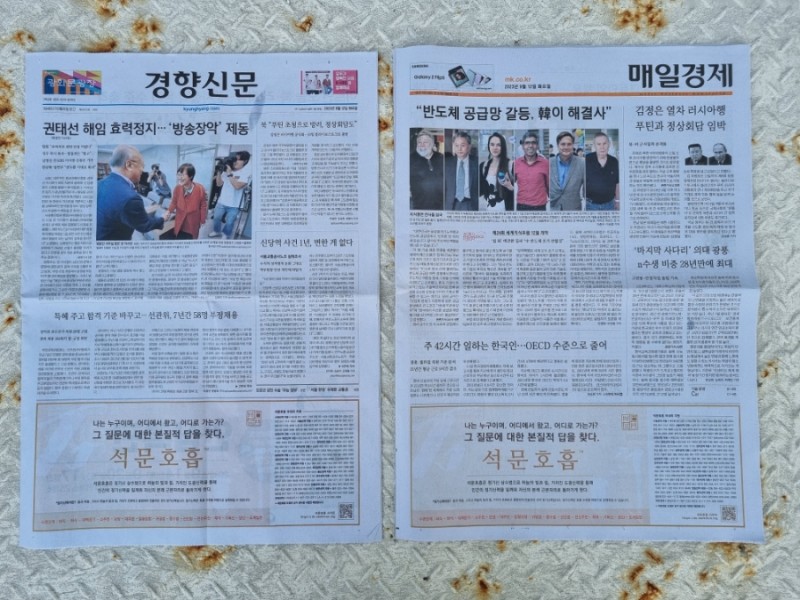 ‘석문호흡’ 경향신문과 매일경제신문 1면 신문광고가 나왔습니다!