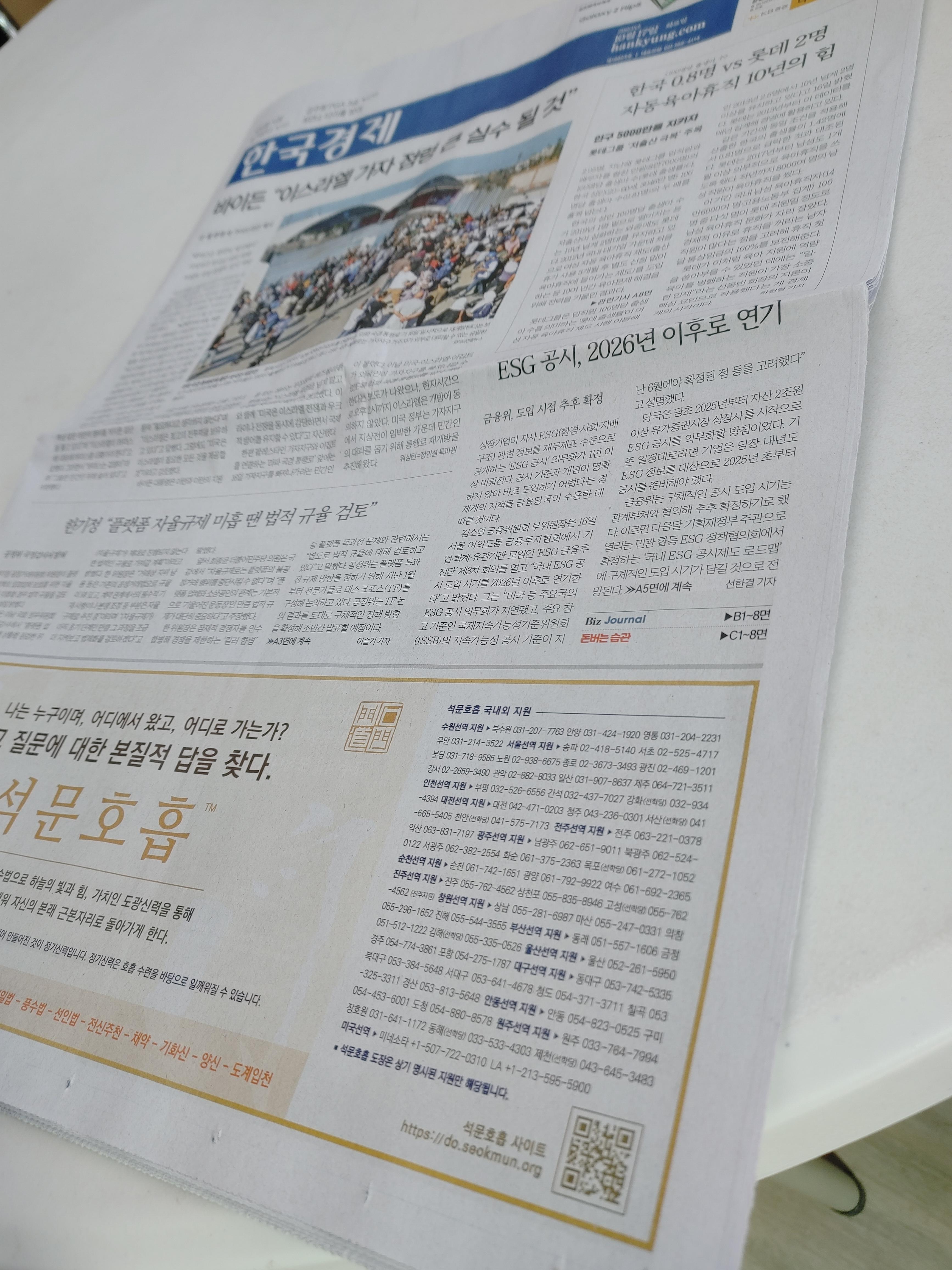 ‘석문호흡’ 한국경제신문 1면 신문광고가 나왔습니다!
