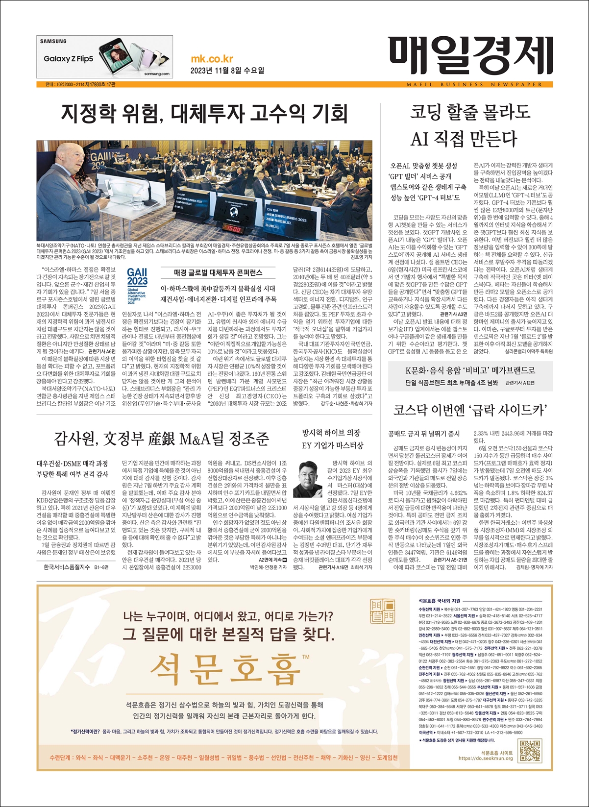 《中央日報, 每日經濟新聞》 1面 広告 (2023年 39, 40回次)
